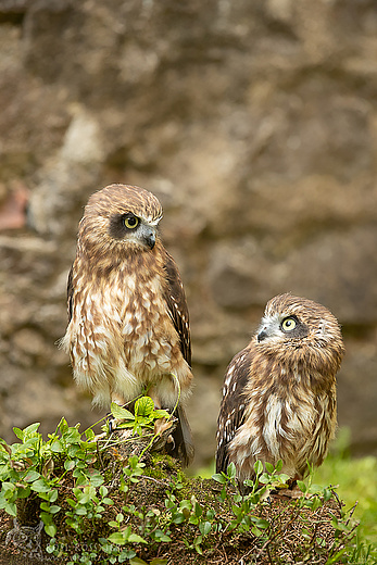 Wir freuen uns sehr über Emil, einen acht wochen alten Kuckuckskauz und Fietje, ebenfalls acht Wochen, einen Habichtskauz.