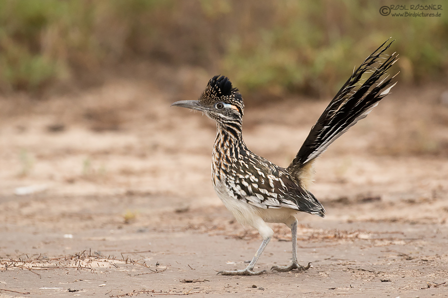 Roadrunner - und in der Tat sieht man den "Wegekuckuck" meist auf der Sandpiste rennen... Einer der witzigsten Vögel von Texas und gleichzeitig einer, der sehr schwer zu fotografieren ist - einfach, weil er eigentlich immer rennt...
